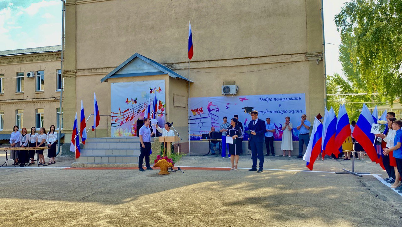 1 сентября в ГАПОУ СО "Новоузенский агротехнологический техникум" прошла торжественная линейка, посвященная Дню знаний. На линейке присутствовали студенты, преподаватели, мастера производственного обучения, работники техникума, родители и гости. Торжественная линейка началась с поднятия государственного флага РФ, это право было предоставлено бывшему студенту нашего учебного заведения, участнику специальной военной операции Ситалиеву Испулу и отличнице учебы, получателю Правительственной стипендии студентке группы В-31 Заглядовой Светлане. С традиционным торжественным словом ко всем присутствующим обратился директор техникума Петр Александрович Аленин. Он поздравил всех с началом нового учебного года и пожелал студентам настойчивости и больших успехов в освоении выбранной специальности и профессии, упорства в достижении поставленных целей. В этот день наш техникум встречал гостей в лице: Заместителя министра образования Саратовской области, начальника управления развития профессионального образования и организационной работы Л. А. Григорьевой, Первого заместителя главы по социальный вопросам Новоузенского муниципального района А. А. Шкрябина, Заслуженного учителя РФ, Почетного работника среднего профессионального образования, Отличника народного просвещения Л. А. Разуваевой, Депутата районного собрания, Председателя наблюдательного совета ГАПОУ СО "Новоузенский агротехнологический техникум" А. С. Гуськова. Гости обратились к присутствующим с приветственным словом и поздравили всех с началом нового учебного года. От Учебного центра «Знание» за активное участие в общественной жизни техникума, высокие показатели в учебе сертификатами на сумму 3 тысячи рублей были награждены Заглядова Светлана студентка группы В-31, Курганов Александр - студент группы П-31, Ефремов Владимир – студент группы МР-21, Трехина Светлана – студентка группы П-31, Николаева Оксана – студентка группы ПК-31. Неугасима память поколений и память тех, кто проявил образцы мужества и стойкость при участии в специальной военной операции на Украине, все присутствующие почтили минутой молчания и вспомнили погибших героев, выпускников нашего техникума. Корзина с цветами была возложена к мемориальной доске уроженцу города Новоузенска, выпускнику техникума, погибшему в Афганистане Бесенбееву Альбеку Камидулловичу и погибшим в ходе специальной военной операции Плотникову Павлу Сергеевичу и Юданову Александру Николаевичу, право возложить цветы было предоставлено студентам военно-патриотического клуба «Пограничник» Мокриеву Александру (группа ЭР-11) и Трехиной Светлане (группа П-31). По доброй традиции нашего учебного заведения, обучающиеся первых курсов смогли насладиться вкусными сладкими пирогами, врученными им на линейке. В заключение торжественной линейки право дать первый звонок было предоставлено Заслуженному учителю РФ, Почетному работнику среднего профессионального образования, Отличнику народного просвещения Л. А. Разуваевой и отличнику учебы студенту группы П-31 Курганову Александру. Затем студенты отправились со своими кураторами и мастерами производственного обучения на открытый урок "Зачем человеку учиться?", в рамках федерального проекта Разговоры о важном.