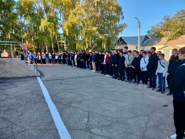В ГАПОУ СО «Новоузенский агротехнологический техникум» На линейку собрались студенты 1-4 курсов ГАПОУ СО "Новоузенский агротехнологический техникум". Право поднять флаг Российской Федерации было предоставлено, волонтеру волонтерского отряда "Мой выбор" Сластухину Максиму, студенту группы ЭР-31,за активную работу в волонтерском конкурсе в V Всероссийском онлайн-голосовании за объекты благоустройства в рамках федерального проекта "Формирование комфортной городской среды" национального проекта "Инфраструктура для жизни".