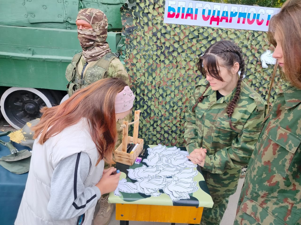 Особое внимание привлекла интерактивная площадка, организованная на патриотическую тематику "Подари тепло солдату". Были представлены разнообразные активности, позволяющие гостям праздника прикоснуться к истории своей Родины. Среди интересных элементов площадки различные мастер-классы, демонстрация предметов времен ВОВ и специальной операции. Гости имели возможность ознакомиться с экспозициями, рассказывающими о Героях России Саратовской области, ярмарка консервированной продукции и стенд пожеланий, курирующий студентами военно - патриотического клуба "Пограничник " Трехиной Светланой и Витютневой Викторией ГАПОУ СО "Новоузенский агротехнологический техникум", на котором посетители оставили теплые слова благодарности и поддержку защитникам нашей родины.