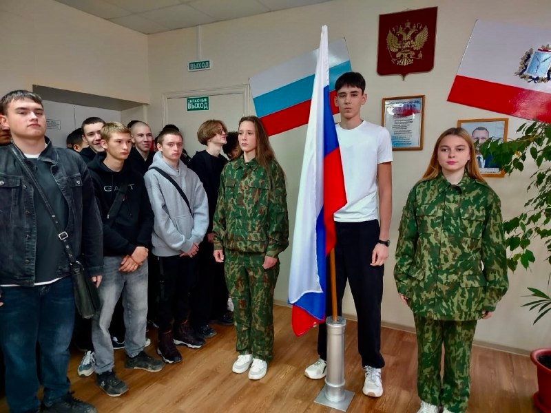 На линейку собрались студенты 1-2 курсов ГАПОУ СО "Новоузенский агротехнологический техникум", право поднять флаг Российской Федерации в ГАПОУ СО «Новоузенский агротехнологический техникум», было предоставлено студентам группы ЭР-21, победителям турнира по баскетболу среди обучающихся техникума в лице Грохотова Романа.