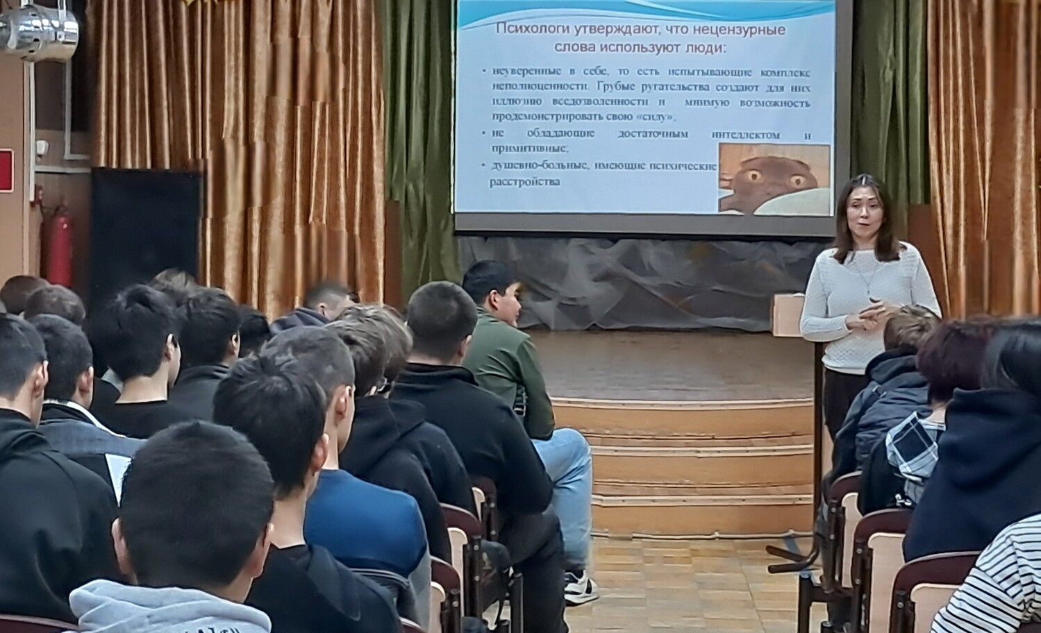 В октябре для первокурсников прошла беседа на тему «Сила слова или вирус сквернословия». Студенты обсудили использование нецензурной лексики, её исторические корни и влияние на физическое и психологическое здоровье. Также рассмотрели правовые последствия использования нецензурной брани в общественных местах и в сети Интернет. | |