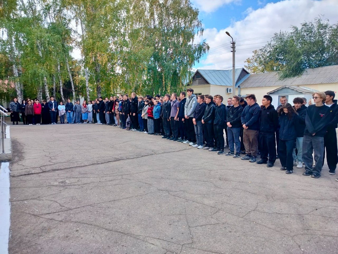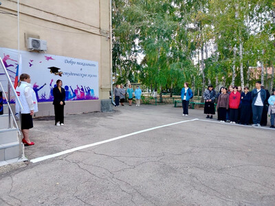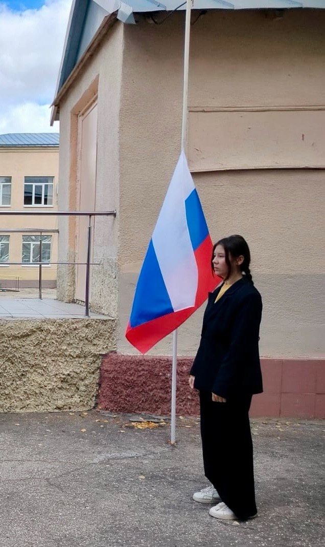 На линейку собрались студенты 1-4 курсов ГАПОУ СО "Новоузенский агротехнологический техникум". Право спустить флаг Российской Федерации в ГАПОУ СО «Новоузенский агротехнологический техникум», было предоставлено победителю конкурса плакатов по правилам дорожного движения «Береги свою жизнь, соблюдай ПДД». студентке группы ПК-21 Мустафаевой Инне.