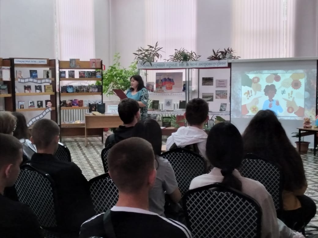 Что такое терроризм? Почему он касается каждого? Как не попасть в его сети? Эти вопросы стали основой урока гражданственности «Будущее без терроризма — терроризм без будущего». Мероприятие прошло 4 сентября в Новоузенской Центральной библиотеке для студентов ГАПОУ СО «Новоузенский агротехнологический техникум». На занятии студенты групп: В-11, П-21 (куратор Кочегарова А.В.), ЭР-11 (куратор Карагойшиев М.Т.) получили информацию о феномене терроризма, его потенциальных угрозах для международной безопасности, а также ознакомились с наиболее значимыми террористическими актами, имевшими место на территории Российской Федерации за последние десятилетия. В ходе обсуждения были рассмотрены рекомендации по поведению в условиях террористической угрозы. Просмотренные тематические видеоматериалы позволили участникам получить представление о целях, методах и тактиках, используемых экстремистами и террористами, а также о способах их вербовочной деятельности. Кроме того, участники ознакомились с мерами предотвращения контактов с представителями террористических организаций и алгоритмами действий в случае предложения или принуждения к экстремистской деятельности. Мероприятие способствовало формированию у участников понимания основополагающих принципов: ценности человеческой жизни, значимости взаимопомощи, необходимости проявления бдительности и чуткости. | |