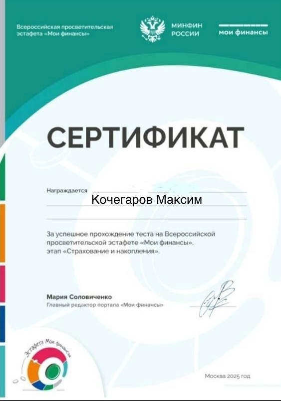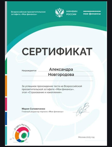 В рамках шестого этапа Всероссийской просветительской эстафеты "Мои финансы", проходящего под эгидой Минфина России и в соответствии с тематикой этапа Эстафеты "Думай о будущем: страхование и накопления" студенты группы МР-21 прошли тестирование по основам финансовой грамотности, посвященное оценке знаний финансово-цифровой безопасности семьи. Преподаватель спецдисциплин Шлыкова С.Н. | |